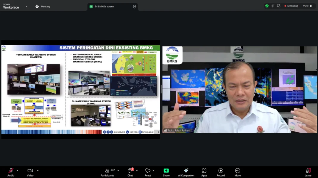 Menurutnya, tantangan tersebut perlu dijawab melalui penguatan sistem peringatan dini yang terintegrasi dari hulu ke hilir. Dalam konteks ini, BMKG berperan di hulu sebagai penyedia data, informasi, dan peringatan dini berbasis sains.